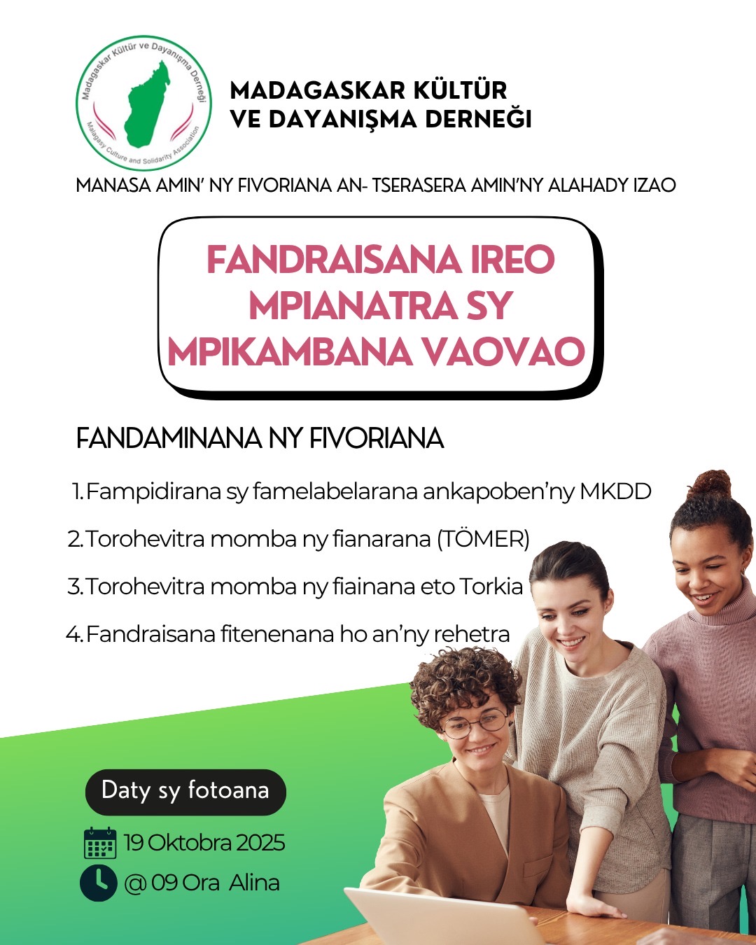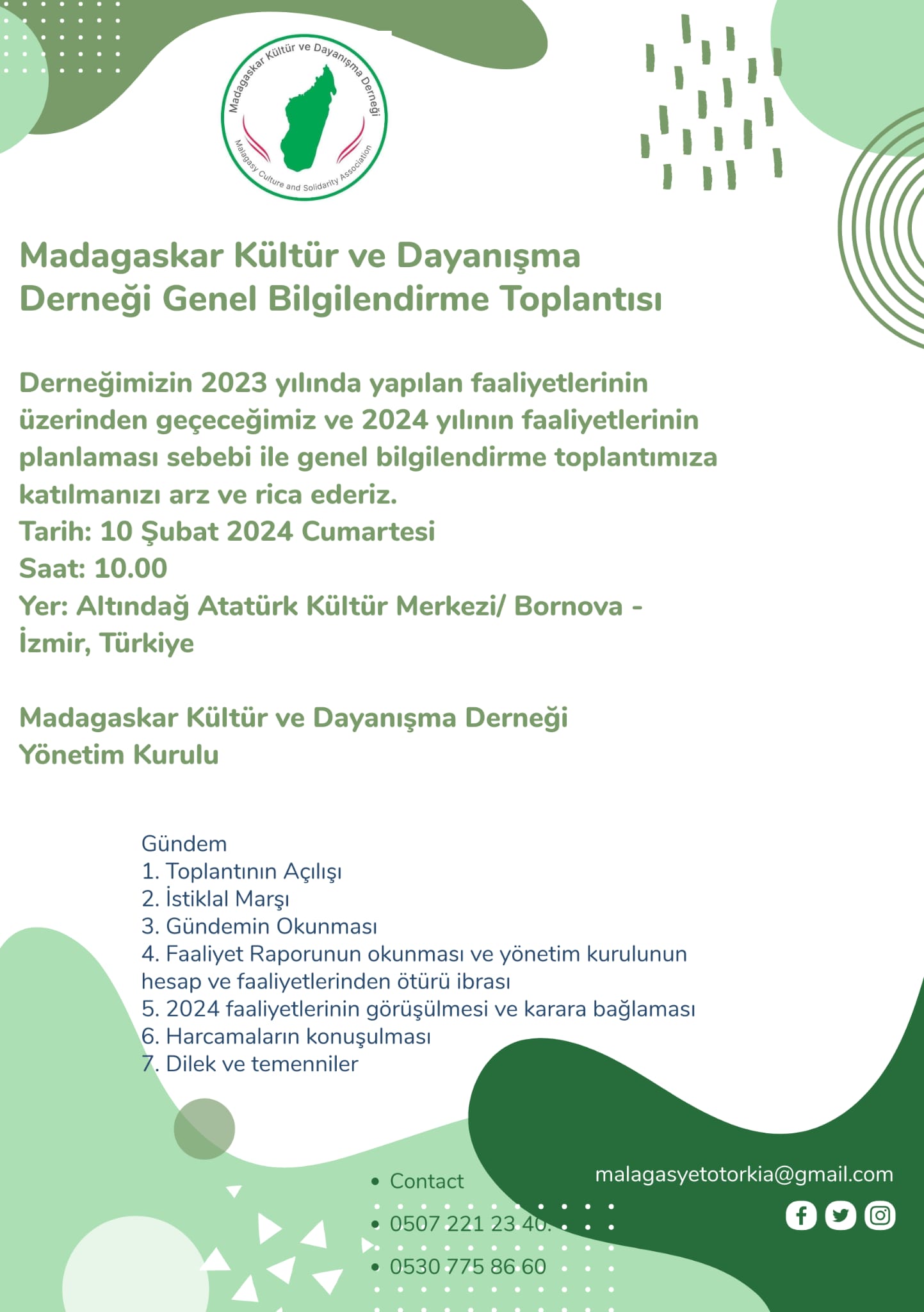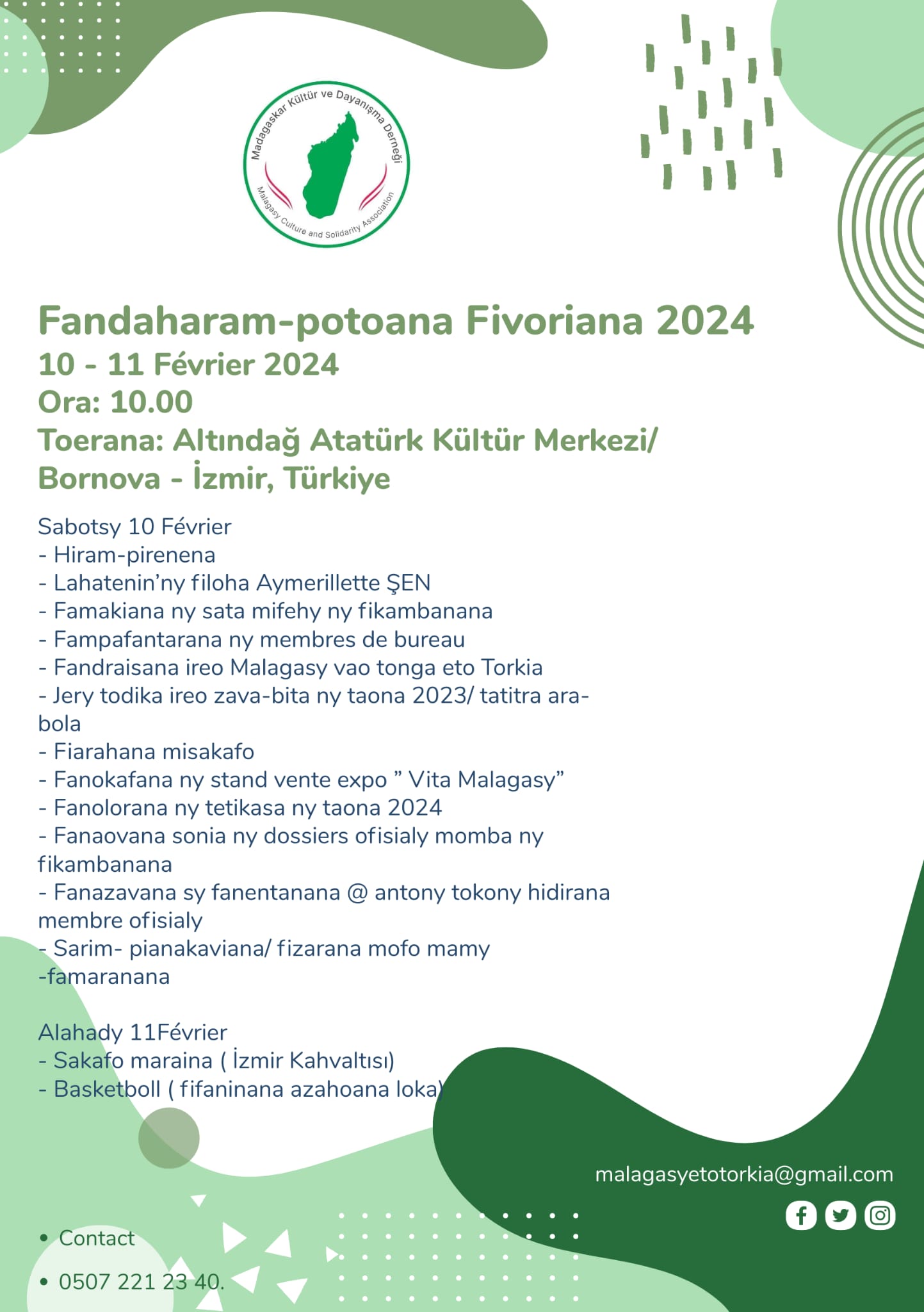 Forte d’un riche héritage culturel, de traditions vivantes et d’un esprit de solidarité profond, lMadagaskar Kültür ve Dayanışma Derneği (MKDD) — Association Culturelle et Solidaire de Madagascar en Turquie — a été officiellement fondée en 2023 afin de rassembler, représenter et soutenir la communauté malgache vivant en Turquie.