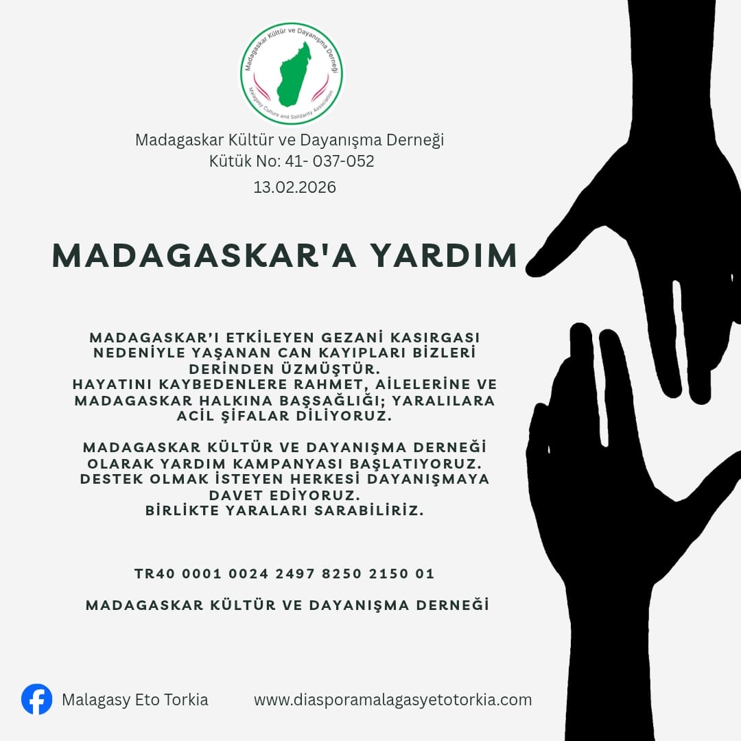 Merkezi ilimizde bulunan Madagaskar Kültür ve Dayanışma Derneğinin başkanı Aymerillette Şen, Türkiye Cumhuriyetinin kuruluşunun 100.yılını yayınladığı bir mesajla kutladı
